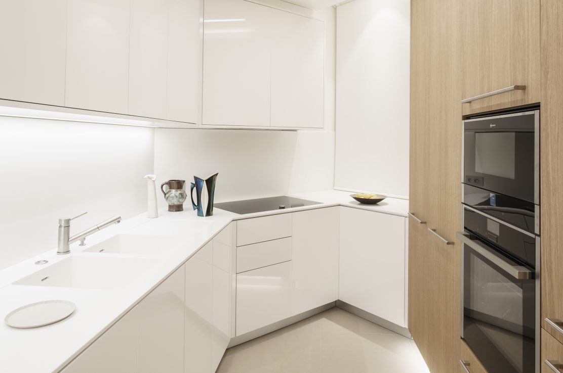 L'espace dévolu à la cuisine, assez biscornu, a conduit l'agence à utiliser deux matières contrastées , pour structurer la pièce et lui rendre sa cohérence